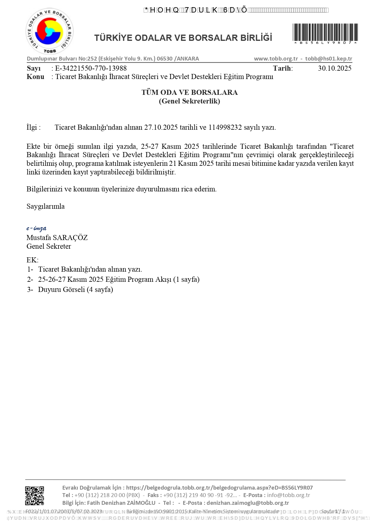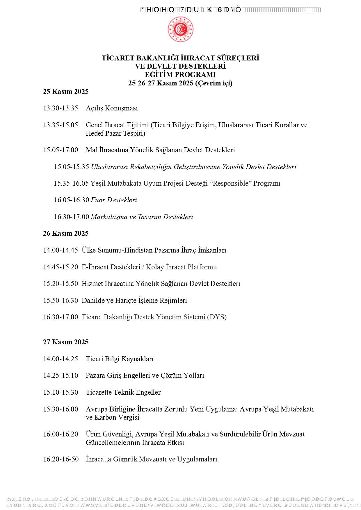 10 Aralık 2025 Duyurular Ticaret Bakanlığı İhracat Süreçleri ve Devlet Destekleri Eğitim Programı Hakkında