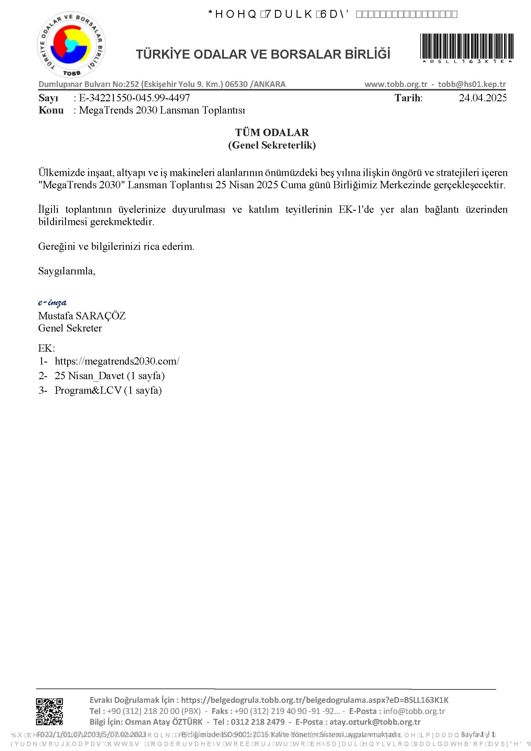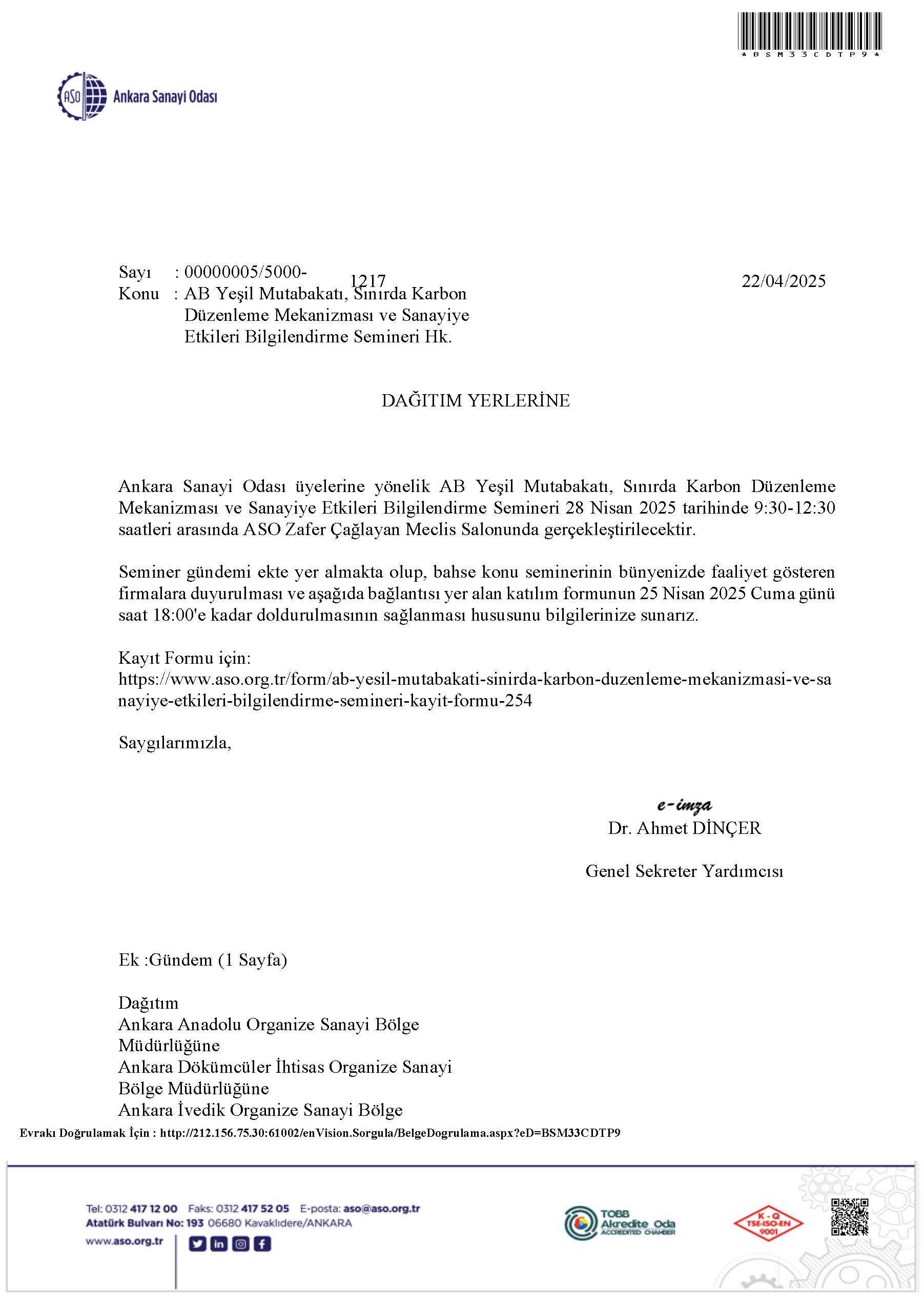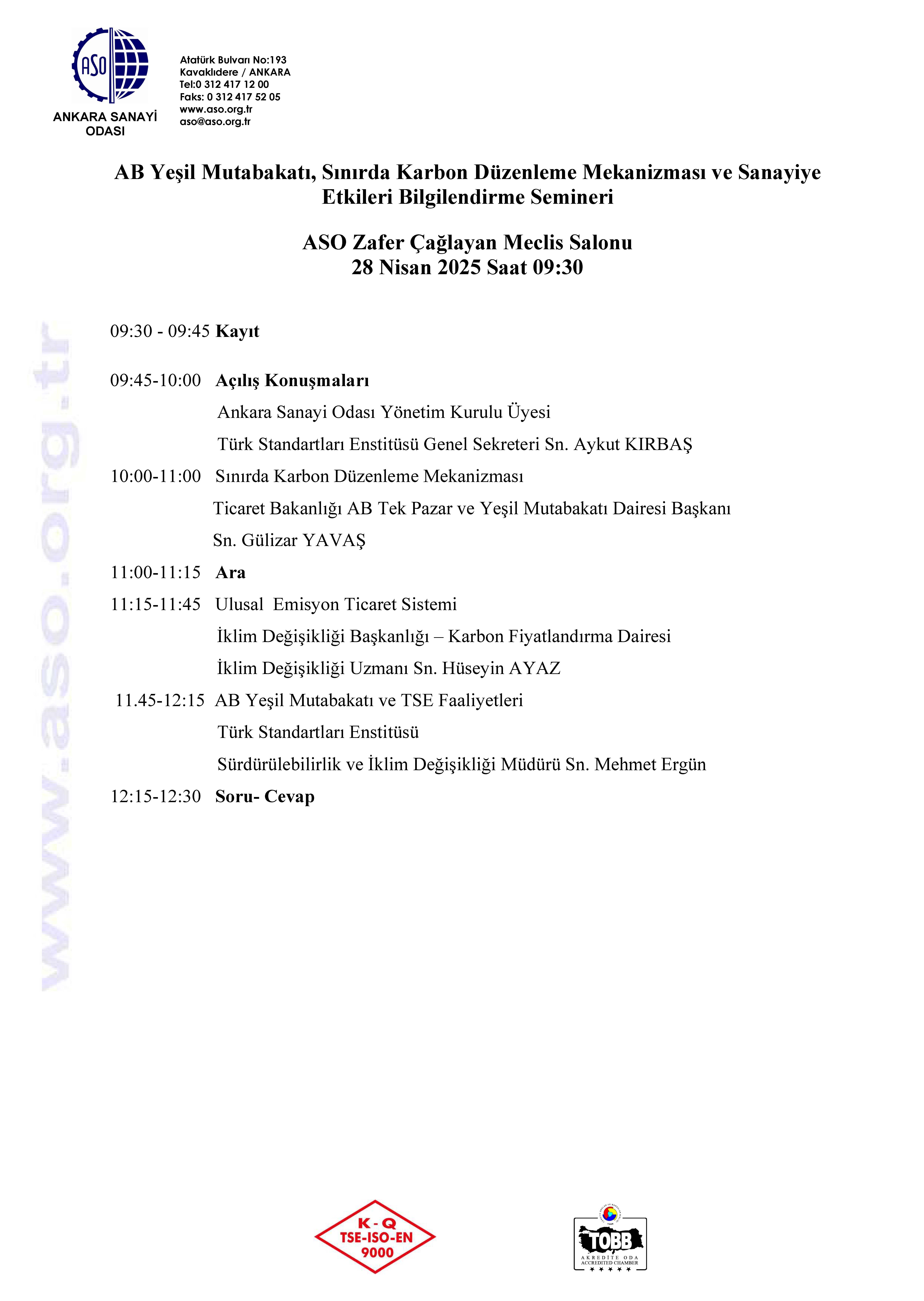 24 Nisan 2025 Duyurular AB Yeşil Mutabakatı, Sınırda Karbon Düzenleme Mekanizması ve Sanayiye Etkileri Bilgilendirme Semineri