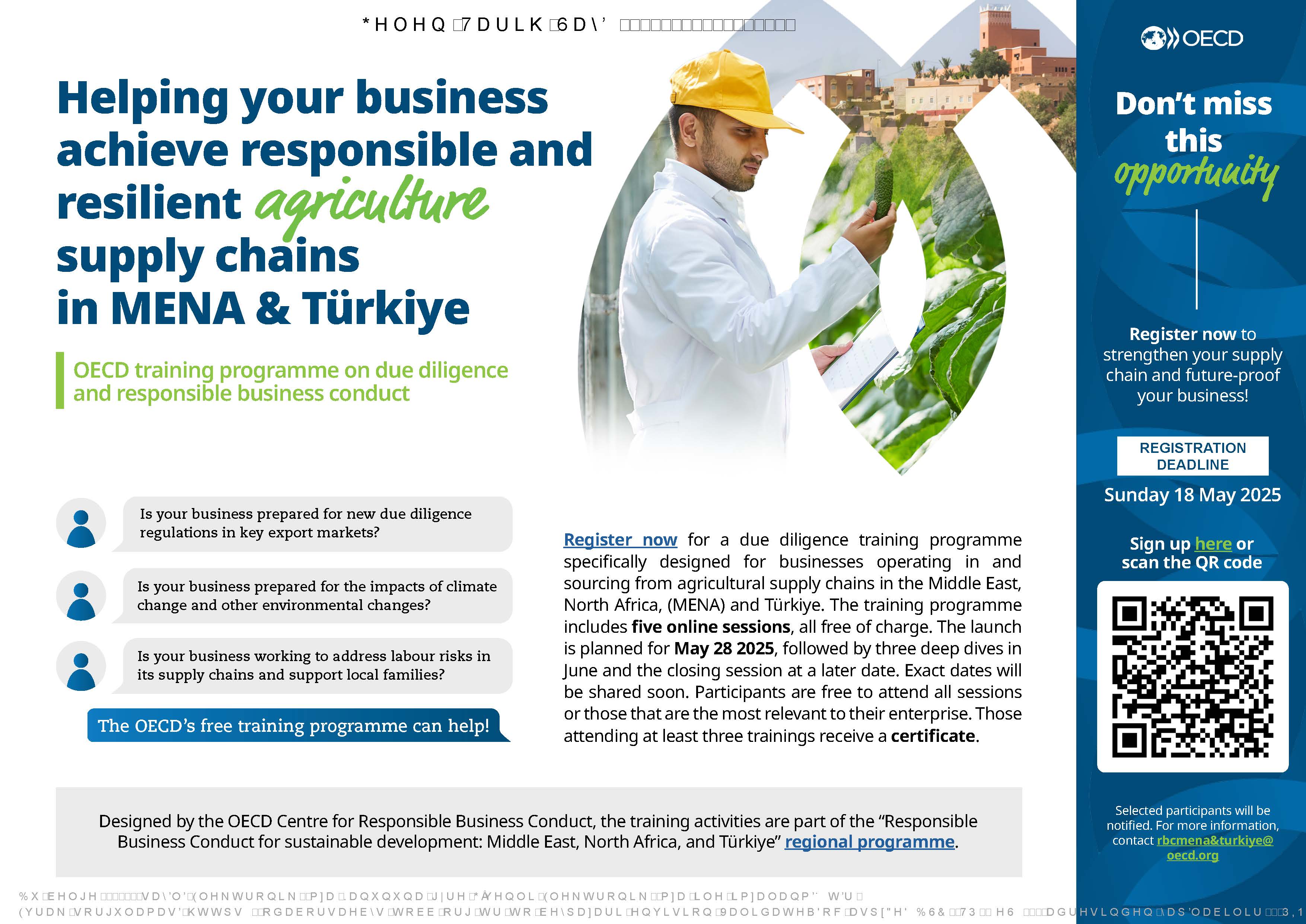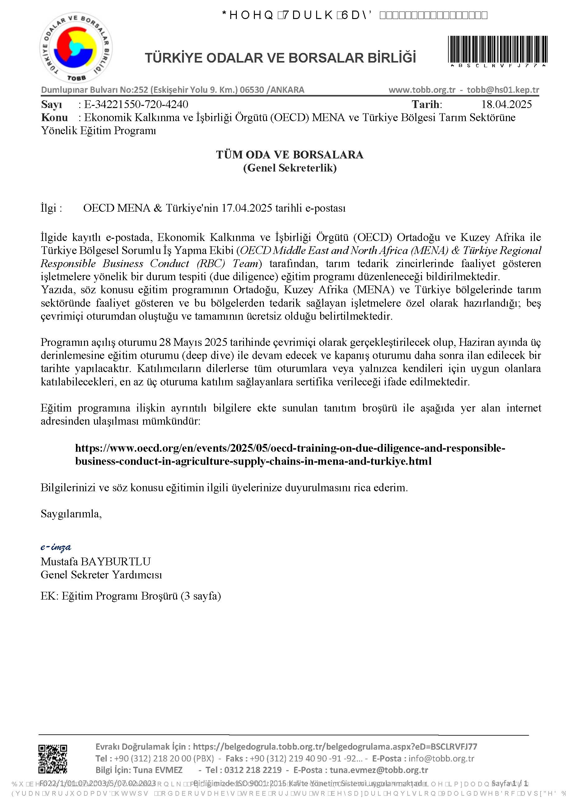 24 Nisan 2025 Duyurular Ekonomik Kalkınma ve İşbirliği Örgütü (OECD) MENA ve Türkiye Bölgesi Tarım Sektörüne Yönelik Eğitim Programı