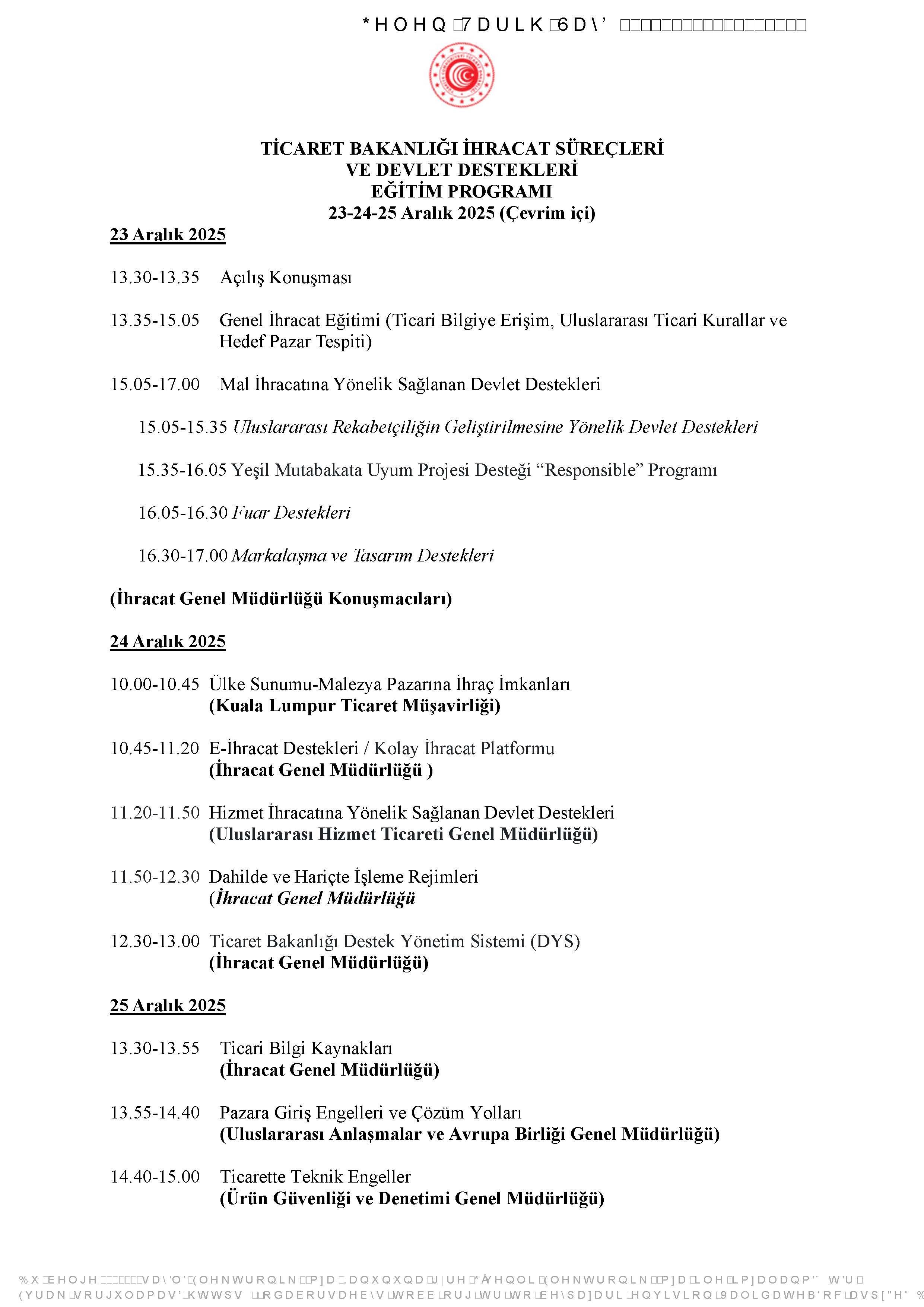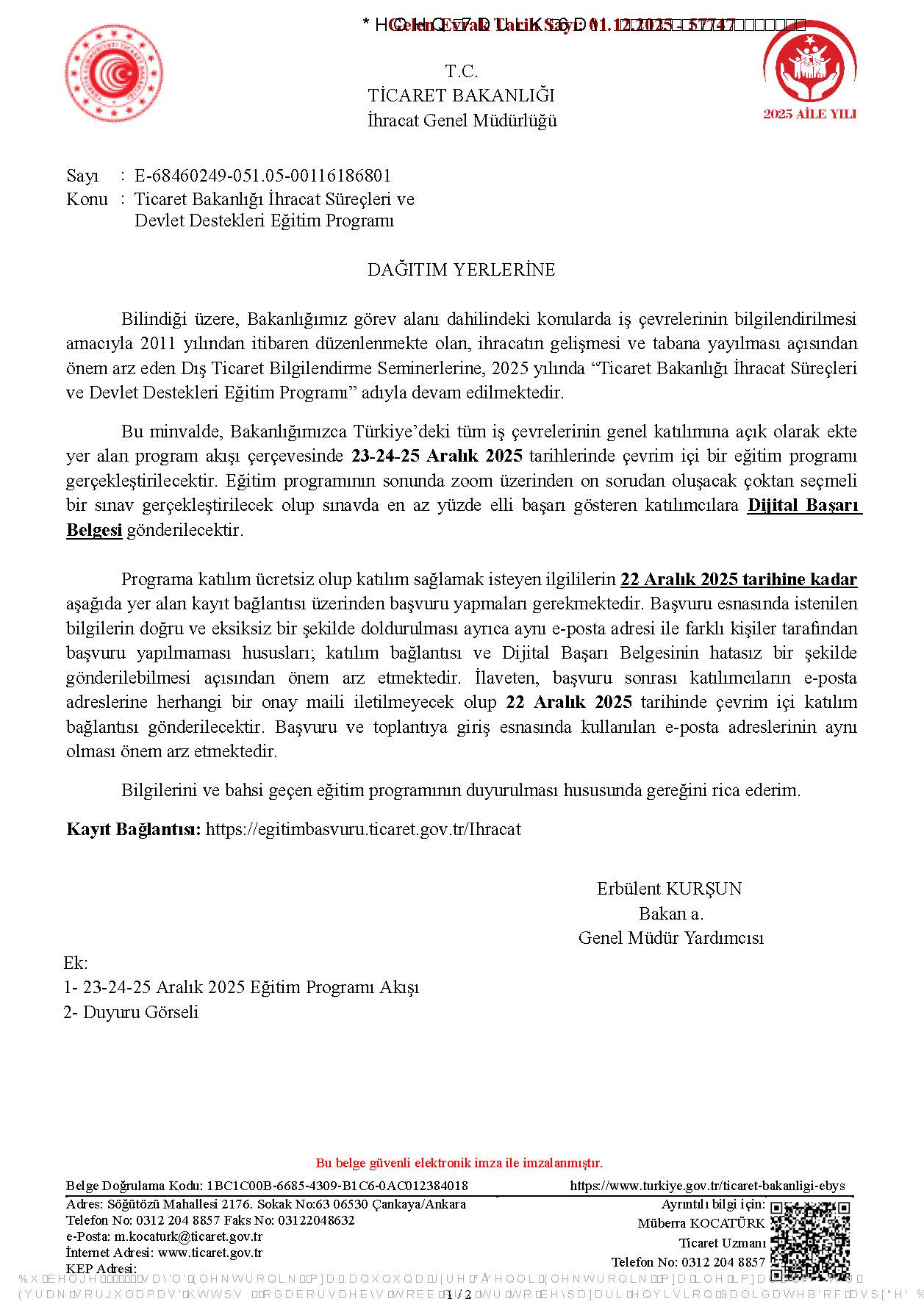 10 Aralık 2025 Duyurular Ticaret Bakanlığı İhracat Süreçleri ve Devlet Destekleri Eğitim Programı Hakkında Sonraki