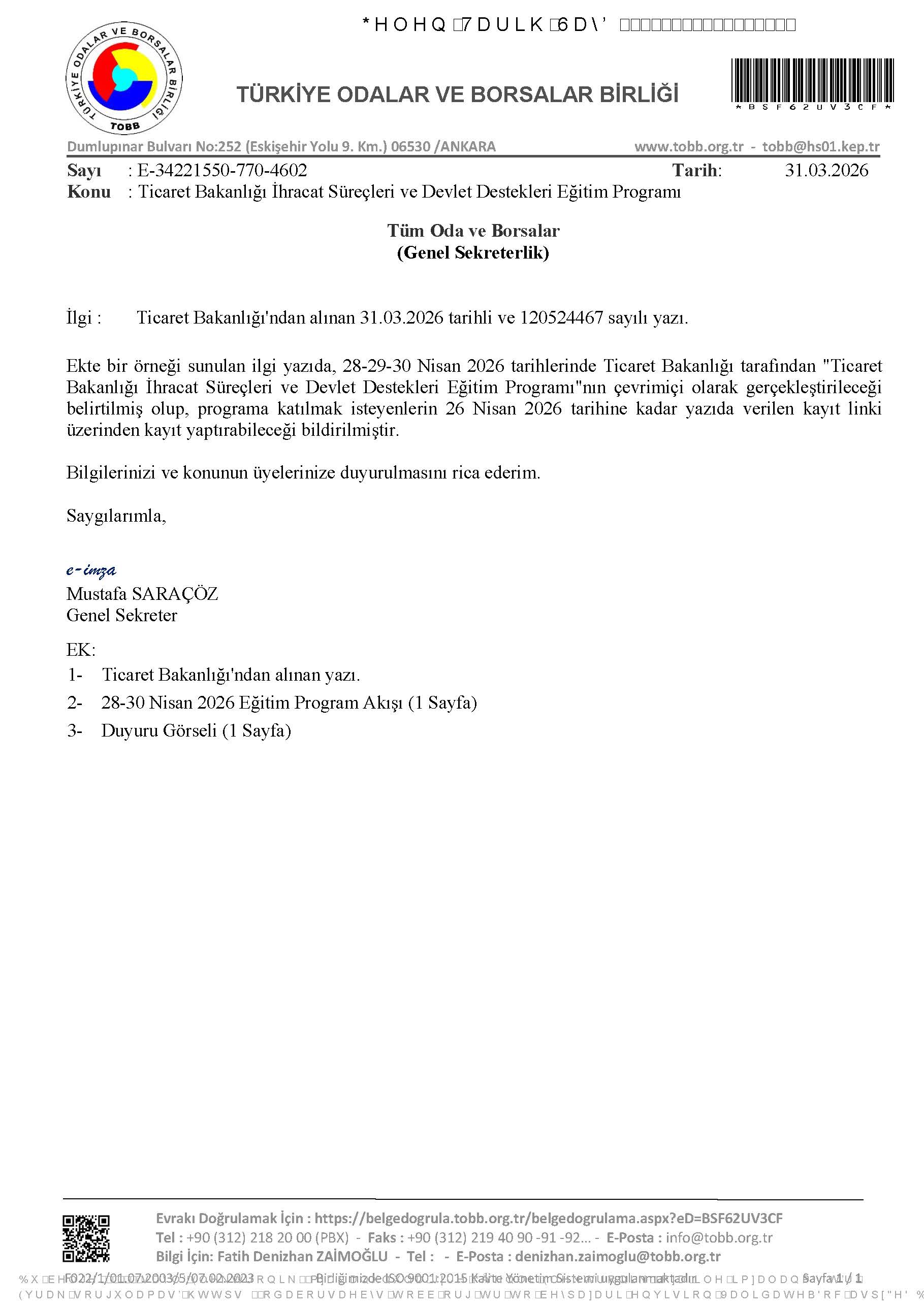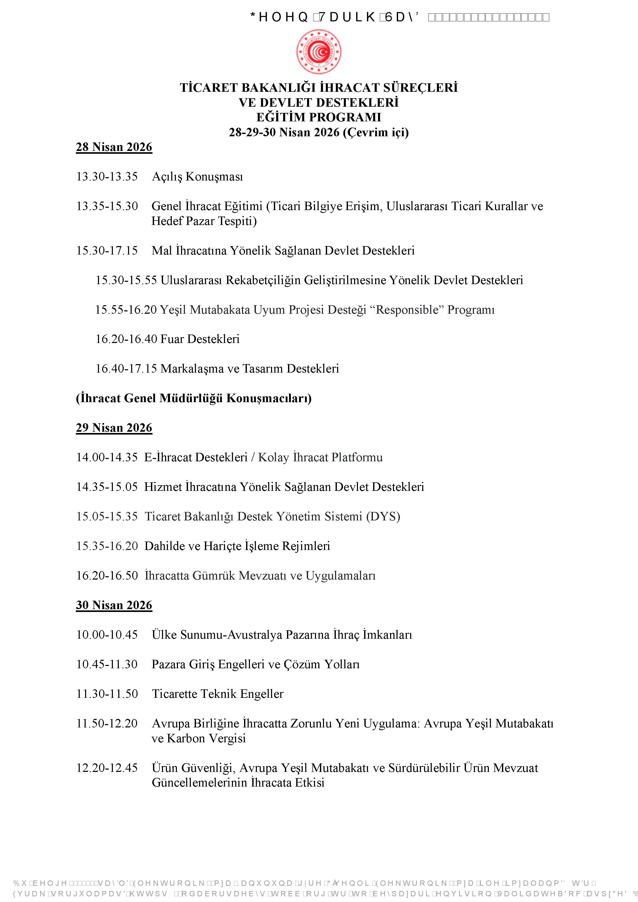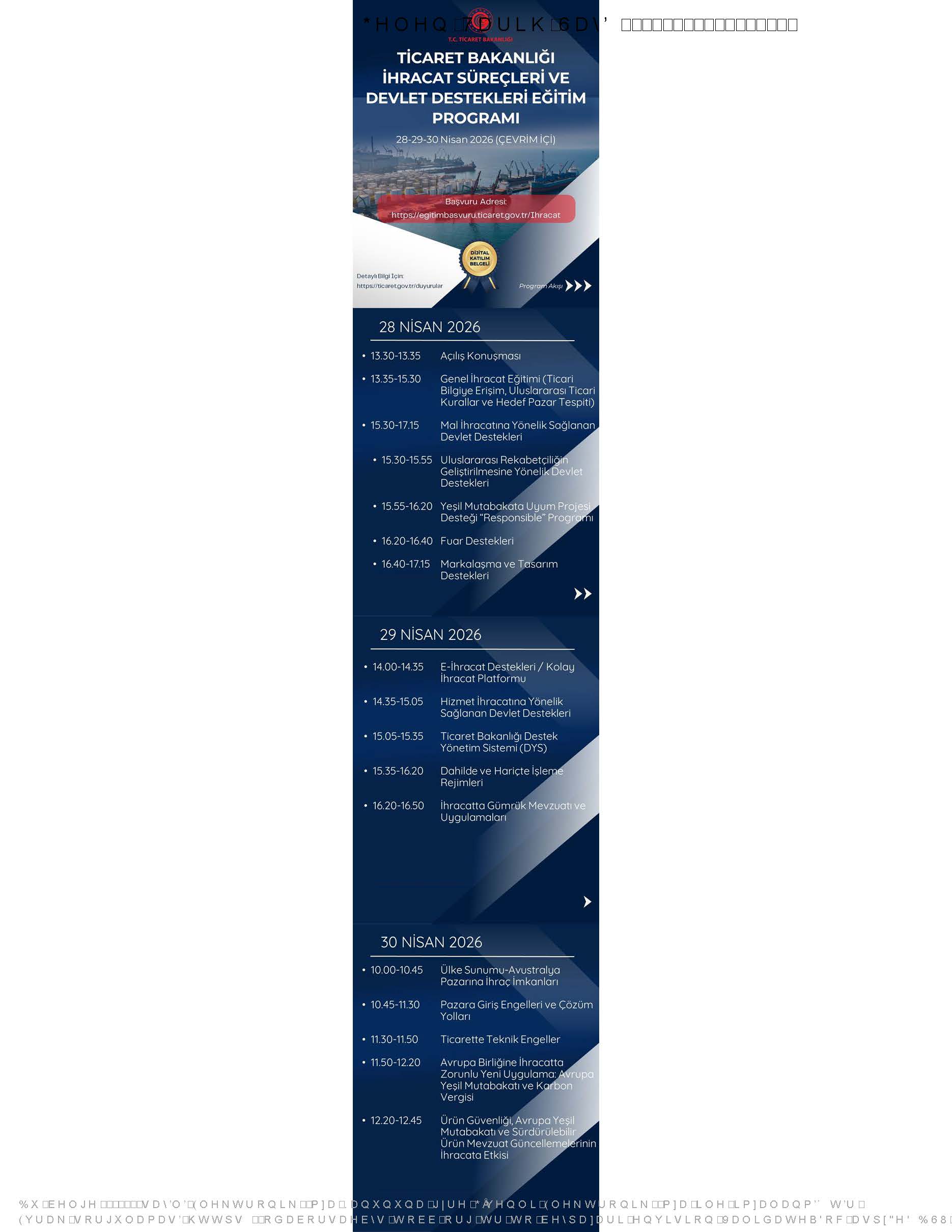 08 Nisan 2026 Duyurular Ticaret Bakanlığı İhracat Süreçleri ve Devlet Destekleri Eğitim Programı Sonraki