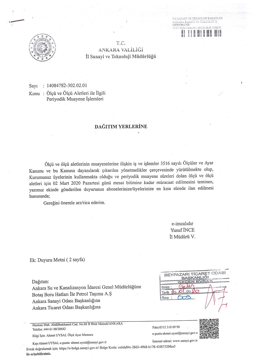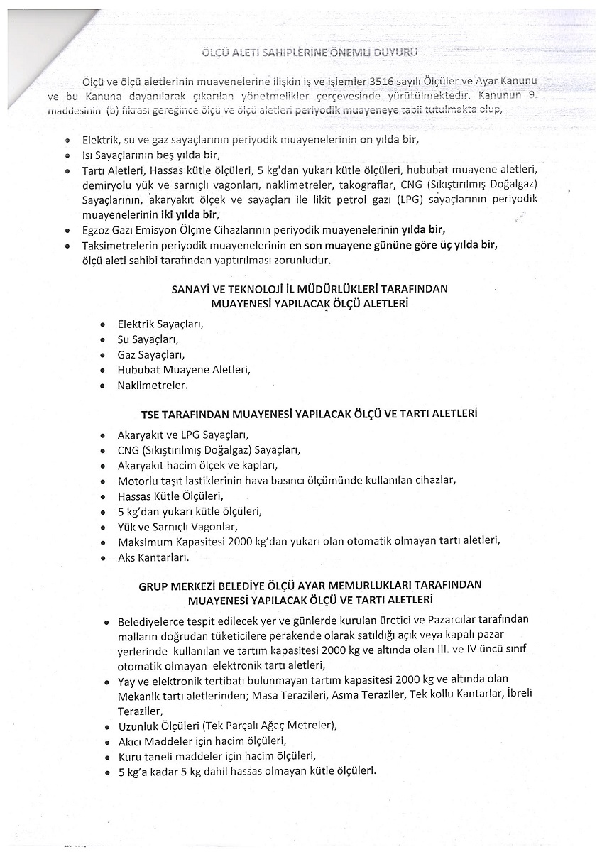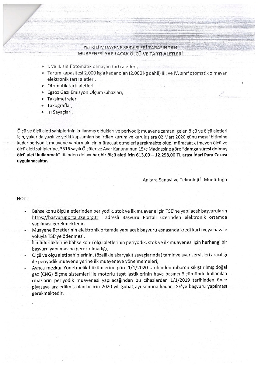 22 Ocak 2020 Duyurular Ölçü ve ölçü aletleri ile ilgili periyodik muayene işlemleri hk. Önceki Sonraki