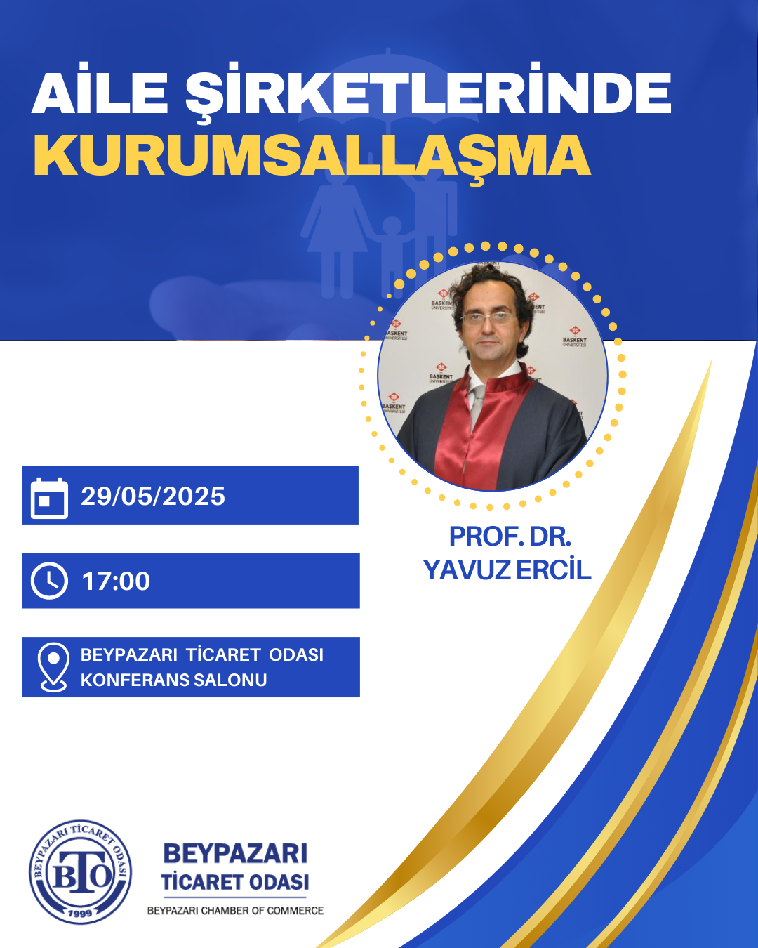 Şirketinizi nesiller boyu yaşatacak adımları, Prof. Dr. Yavuz ERCİL’in katkılarıyla “Aile Şirketlerinde Kurumsallaşma” seminerinde birlikte ele alıyoruz.